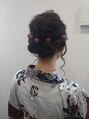 波ウェーブ+くるりんぱ+タイトロープ+裏編み込みシニヨン。シニヨンでも組み合わせによってイメージが変わりますので事前にお伺いして好みに合わせたスタイルをつくります。