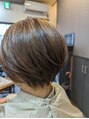 ショートボブ ベースをしっかり作って耳後ろなど重い所の毛量をスッキリ、ウィービングして、ベージュのオンカラー 白髪が分かりづらいです。
