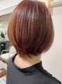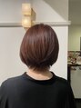 カラーは明るめのオリエンタルピンク☆大人のキレイめショートです。前下がりのラインで顎くらいの長さがあるので初めてのショートにもおすすめです♪