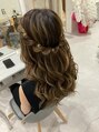 トップのみアレンジして下に下ろす髪を多めにしたスタイル。
