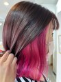 インナーカラーをピンクにさてベースもそらに合わせてピンクバイオレットで染めました。