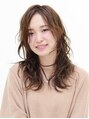 フリルのような質感の柔ウエーブに、センターでナチュラルに分けた前髪がはらりと顔に落ちてセクシーさをほのかにプラスする、女の子らしさが出るロングスタイル。
