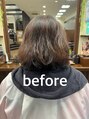 大きくうねる癖毛、梅雨時期になるとクセがでてボリュームもでてまとまらない髪質。ただ真っ直ぐになり過ぎるのも嫌なので根本から中間まではストレート、毛先はカールのストカールで施術。乾かしただけで毛先が内巻きになるので毎日のお手入れが大変、楽に!