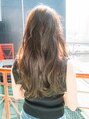 カジュアルなスタイルでカットは全体にレーヤーをいれることによってとても軽く見えます。最近では暗めのカラーは大人女性から人気になっています。前髪も大きめにラフに巻いて動きをだして肌の透け感をだしています。[五反野]