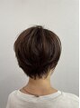 ボリュームが出やすいように首元をしっかりしぼりました。ボリューム感がしっかりと出るので、頭の形やフェイスラインがキレイに見えます。
