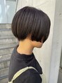 お客様スタイル!襟足とサイドはハサミで刈り上げたので柔らかいカットラインに。耳が隠れるくらいのショートボブにカットしました!前髪はオン眉でスッキリと☆カラーは落ち着いたラベンダーアッシュ。ツヤツヤになりました!