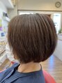 前下がりボブ当店オススメの白髪染め。カラー後白髪染め特有の黒っぽくならないオシャレ染めと同じ発色のカラーです。暗い、黒い仕上がりに満足出来なかった方。白髪染めに抵抗がある方。一度試されて下さい。