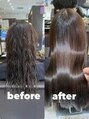 一年ほど前にブリーチをしており縮毛矯正をオーダーしてもお断わりされてしまう状態。酸性縮毛矯正なら不可能を可能にできるので結果ハリコシを残した状態でサラツヤなストレートヘアーに。ご本人も大喜び。