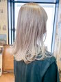 ミルクティーアッシュハイトーンカラー斜めバングうる艶髪/ホットペッパービューティー