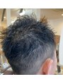 スパイキーベリーショート。トップは動きの出る長さまで切り込み、ハチ周りまで刈り上げてスッキリと。前髪はアップバング可能な短さに。その日の気分でセンターかサイドパートに流しかたに変化を。