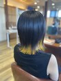 - 顔周りのブリーチにイエローのカラーを乗せてカットは前髪を作り外ハネにして可愛さを出しました!