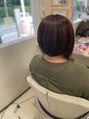 重たく見えるボブですが、表面の動きを増やすようにて軽さを出します。襟足はツーブロックで涼しく夏はおすすめです!
