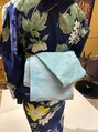 花火大会にお出かけのお客様のゆかた着付けを担当させて頂きました。とても素敵な浴衣で、清楚な雰囲気のお客様に大変お似合いでした♪