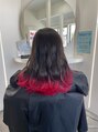 毛先のみのカラーです。ブリーチからの赤です。巻いて動き出るように表面だけレイヤー入れてます。