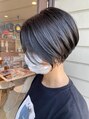 透明感ブルーブラック大人可愛い小顔丸みショートボブ20代30代