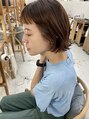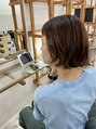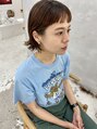 オン眉に外ハネのミニボフボブヘア。くせ毛を生かして動きが出るようにカットしてます。色落ちした明るめのカラーも夏仕様にぴったりです^_^