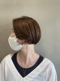 白髪染めもオシャレに!インナーカラーはブリーチした後ピンクベージュへ。全体は明るめのベージュブラウンで柔らかさを♪ぱつっとしたボブのラインが首元をスッキリ見せてくれます!