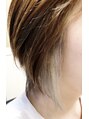 ウィービングカラーとインナーカラーをブリーチで脱色し、アッシュカラー&コバルトブルーを入れてカラーしてます。