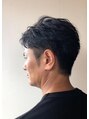 ツーブロックのショートスタイルに、トップに流れるパーマを行うことにより、自然な立ち上がりを与えエレガントなスタイルにしています。