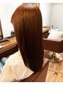 酸性ストレートでクセを抑え、頭皮・髪質改善ヘアエステとスパトリートメントで定期的にケアをされているお客様です。手触りはツルッとなめらかで、サラサラのツヤ髪です。つい触りたくなるような美髪に。