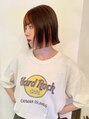 ブラウンベージュにオレンジのインナーカラー◎顎ラインでプツンとボブに。耳にかけても可愛いデザインになってます♪※メニュー選択時は、ワンカラーのクーポンに単体メニューでインナーカラーの追加をお願いいたします