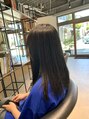 学生さんの黒髪ストレートセミロング。中の毛量を減らし、日々のアイロンを楽に♪