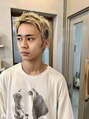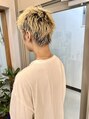 スパイキーショートのメンズヘア(^^)2回ブリーチをして、オレンジみの無い綺麗な金髪にしています(^^)