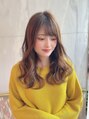 巻きやすいシルエットにカットしておくことで、動きのある大人可愛いスタイルに。ヌーディグレージュで柔らかなツヤと質感をプラスしています。前髪は眉下で、可愛さを強調しつつ小顔見せ。