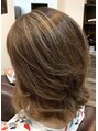 バレイヤージュカラーで白髪も目立ちにくくなります◎ベースの色はグレージュカラーでコントラストを付けています♪