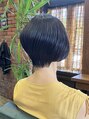 ショートレイヤースタイル。カラーはカーキベージュ。
