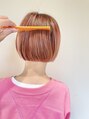 春夏をイメージして色味の薄いピンクオレンジ系のカラーをしてます。カットはまとまりやすいミニボブで♪