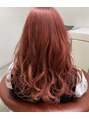 ブリーチ後、しっかりとした赤味を出すためにチェリーレッドでオンカラー。少し個性的な印象がお好みの方にお勧めです。