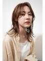 くびれミディアムヘア柔らかい質感のエアリーなミディアムスタイルです顔まわりにレイヤーが入っているので巻くと動きが出やすいです32mmのコテで巻いてオイルで仕上げるのがおすすめです。