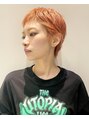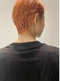 ブリーチ1回のオレンジカラー。タイトなベリーショートでかっこよさもありながら女性らしさのあるヘアスタイルです。直毛の方もですが癖毛の人にもとってもおすすめです。