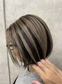 髪の毛の表面だけをケアブリーチして、少しくすんだベージュをオン!表面以外は暗めのグレーでカラーして、コントラストのついたスタイルです!仕上げはオイルをサラッとつけて、軽くクシでとくだけでOKなスタイル○