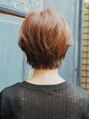 カラーは明るすぎず暗すぎないブラウン系の色味で仕上げています。顔まわりの髪の毛を後ろに流れるようにもっていき顔の輪郭を出すスタイルです。前髪に束感を出して少しオン眉ぎみにすることで顔全体が見えてとても明るい印象にみえます!