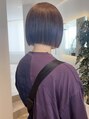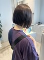 美しいカットラインのミニボブです。顎ラインに切られたミニボブは首を長く綺麗に見せてくれるため、スタイルアップ効果があります。お色は透明感のあるグレージュで、暗髪でも重たくならない様にしています。