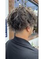 men'sのパーマスタイルです☆フルブロックにツイストスパイラルをかけホワイト系のハイライトを施術した夏にピッタリなスタイル☆カラーはムラシャンで放置できるので、海やプールに行っても色落ちの心配もないです☆