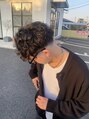 外国人風スパイラルパーマ。フェードの刈り上げに、前下がりカット