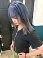 色落ちまで綺麗になるデザインカラー全体はネイビーとブルーをミックスしてイヤリング部分は明るめのベージュに♪(ブリーチ2回必須)