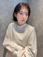 ボブベースの伸ばしかけミディアム。全体は重めのシルエットになるので前髪は薄めのシースルーにし、軽さを出しています。