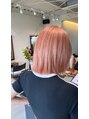 透明感ホワイトオレンジ。ベースがかなり明るめのハイトーンカラーになりますので2回以上のご来店により確実に再現可能なスタイルです。ブリーチをすることによってカラーバリエーションが広がります。