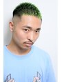 フェードで上に目立つグリーンのカラーで染めたスタイル。<中野> <理容室>