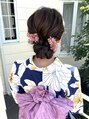 浴衣に合わせたナチュラルなヘアアレンジ。お祭り、花火大会などに是非、お試し下さい。結婚式のお呼ばれスタイルも得意です。