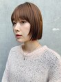 - 韓国/渋谷/ハイトーンカラー/前髪パーマ/ぱっつん前髪/ボブパーマ/アースカラー/シルキーベージュ