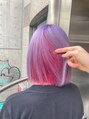 ラベンダーとピンクのインナーカラーボブ!ブリーチ1~2回で出来ます!色落ちはどちらもブロンドに落ちるので次回カラーも困りにくいスタイルです◎
