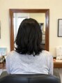 《カット》髪を伸している途中です。レイヤーを入れ裾が大きく外ハネになるようにカットしました。髪が伸びてくると毛先が内に入るように。