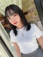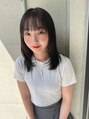黒髪のセミロングスタイルです。顔周りに段をいれて前髪も軽めに黒髪でも重くならないスタイルにしています。