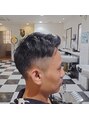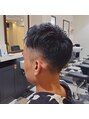 サイドからネープはフェードスタイルすっきりとシルエットよくしトップはバランスをとり、やや長さを残しつつもアップバングで扱いやすいようカット