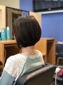 《カット》No.107と同じ切り方ですが、年齢や骨格に合わせてバックのボリュームコントロールを気を付けております。年齢を重ねる毎にボリュームを上げると美しいかと思います。《カラー》アッシュ系で爽やかな印象に。